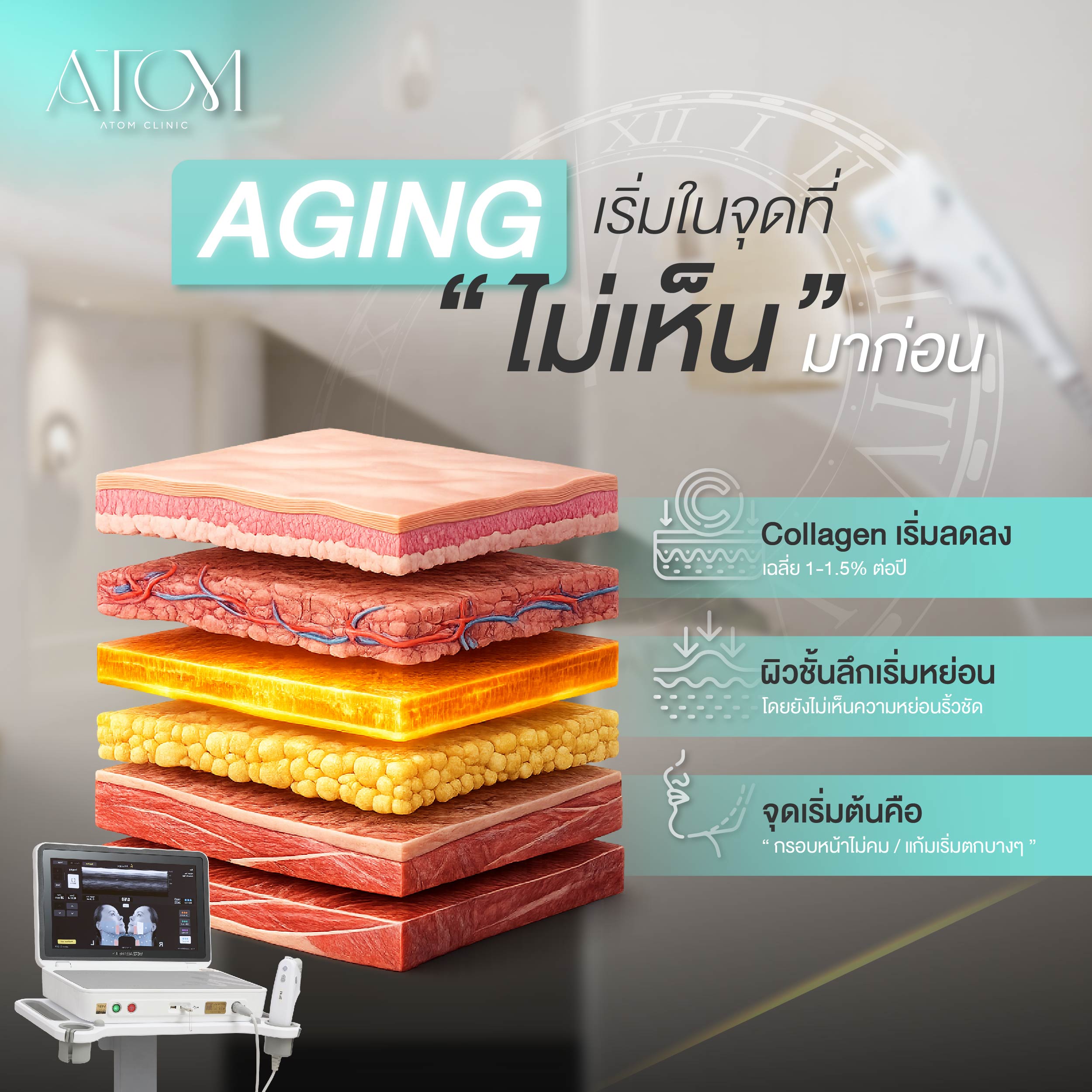 เมื่ออายุเข้าสู่ช่วง 30+ หลายคนเริ่มกังวลเรื่องความหย่อนคล้อย กรอบหน้าไม่ชัด และริ้วรอยเล็กๆ ที่เริ่มเกิดขึ้น บ่อยครั้งเราอาจมองไม่เห็นความเปลี่ยนแปลงเหล่านี้ด้วยตาเปล่า แต่จริงๆ แล้ว “ความหย่อน” เริ่มขึ้นตั้งแต่ ชั้นผิวลึก (SMAS) ซึ่งเป็นชั้นเดียวกับการทำศัลยกรรมยกหน้า เมื่อชั้นนี้เริ่มอ่อนตัวลง การยกกลับให้ตึงเนียนตามธรรมชาติจะยิ่งทำได้ยากขึ้น