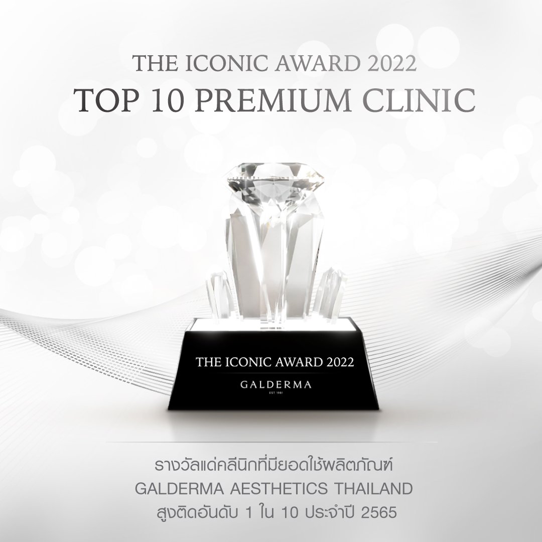 ขอบคุณรางวัล Top 10 Premium Clinic คลินิกที่ใช้ผลิตภัณฑ์จาก Galderma Aesthetics Thailand สูงสุด 1 ใน 10 ประจำปี 2565