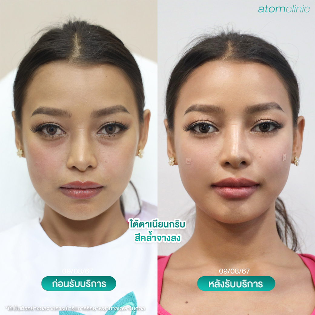 คุณแฮมมี่เล่าถึงความเปลี่ยนแปลงหลังทำ “หลังจากทำโปรแกรมฟิลเลอร์ใต้ตาด้วยเทคนิค AT TRI ใบหน้าดูสดใสขึ้นอย่างเห็นได้ชัด ไม่ต้องพึ่งเครื่องสำอางมาปกปิดเหมือนแต่ก่อน ใต้ตาที่เคยคล้ำและหย่อนคล้อยก็หายไป ความรู้สึกเหมือนใบหน้าได้ถูกรีเซ็ตให้ดูสดชื่นและอ่อนเยาว์กว่าเดิมค่ะ”