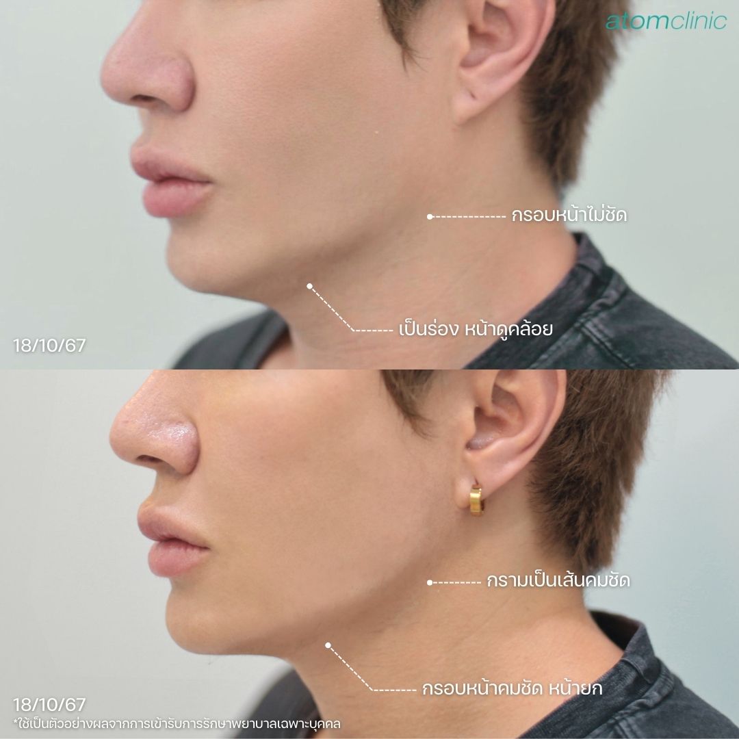 หลังจากปรึกษาคุณหมอที่อะตอมคลินิก คุณโตจึงตัดสินใจเลือกโปรแกรมฟิลเลอร์กรอบหน้า เทคนิค AT TRI ที่มีจุดเด่นในการปรับรูปหน้าให้คมชัดทุกมิติ พร้อมยกกระชับใบหน้าให้ดูเรียวและเป๊ะขึ้น