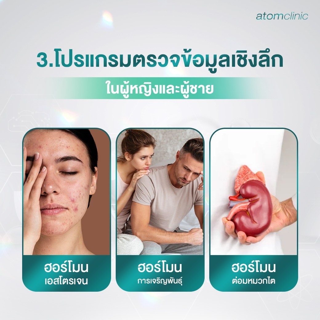 โปรแกรมตรวจสุขภาพเชิงลึกของเราช่วยให้คุณเข้าใจร่างกายของตัวเองมากขึ้น ผู้หญิงและผู้ชายมีการทำงานของระบบต่างๆ ในร่างกายที่แตกต่างกัน โดยเฉพาะระบบฮอร์โมน การตรวจสุขภาพเชิงลึกเฉพาะเพศจะช่วยให้ทราบถึงปัญหาสุขภาพที่อาจเกิดขึ้นในแต่ละเพศ และสามารถวางแผนการดูแลรักษาที่เหมาะสม