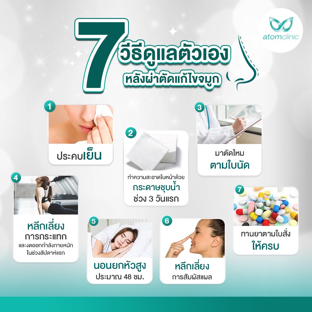 หลังทำจมูกอาจมีอาการข้างเคียง เช่น ใต้ตาบวม เขียวช้ำ มีเลือดออก บ้วนปากแล้วมีเลือดลงคอ อึดอัดจมูก ตึงบริเวณแผลผ่าตัด ซึ่งควรดูแลตัวเองย่างเคร่งครัดเพื่อให้ผลลัพธ์ออกมาสวยงาม และคุ้มค่ากับที่เจ็บตัวไป หมอมีคำแนะนำ ดังนี้