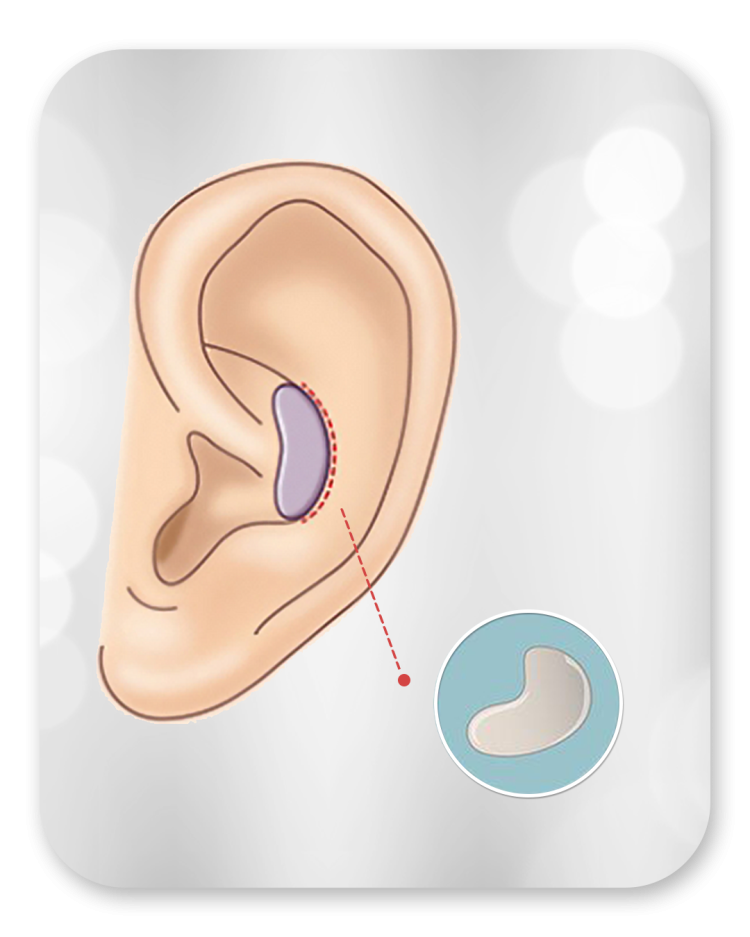 กระดูกอ่อนหลังหู เป็นกระดูกอ่อนที่อยู่บริเวณส่วนแอ่งของใบหู มีขนาดประมาณ 2 เซนติเมตร ซึ่งแพทย์จะผ่าตัดเพื่อนำไปเย็บติดกับปลายซิลิโคนที่ใช้ในการเสริมจมูก เพื่อเพิ่มความยาวของปลายจมูก โดยไม่ทำให้เกิดการเปลี่ยนแปลงต่อโครงสร้างจมูก การใช้กระดูกอ่อนของคนไข้เองมาใช้เสริม ตกแต่งปลาย มีความปลอดภัยเพราะเป็นเนื้อเยื่อของคนไข้เอง ดังนั้นจึงมั่นใจได้ว่าแทบจะไม่มีโอกาสที่ร่างกายจะแพ้ หรือต่อต้านเลย เมื่อระยะเวลาผ่านไปร่างกายก็จะทำการสมานจนกลายเป็นเนื้อเดียวกัน แม้แต่ผิวที่บางมาก หรือเคยทะลุมาก่อนแล้ว สามารถตกแต่งปลายจมูกตามที่ต้องการได้โดยไม่เสี่ยงทะลุ ให้ผลลัพธ์ดีกว่าเสริมด้วยซิลิโคนเดี่ยวๆ