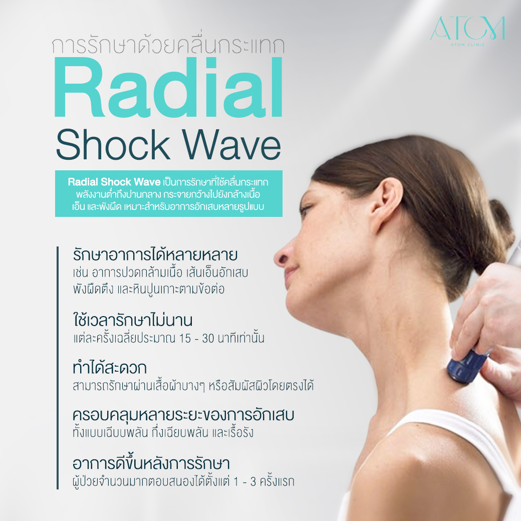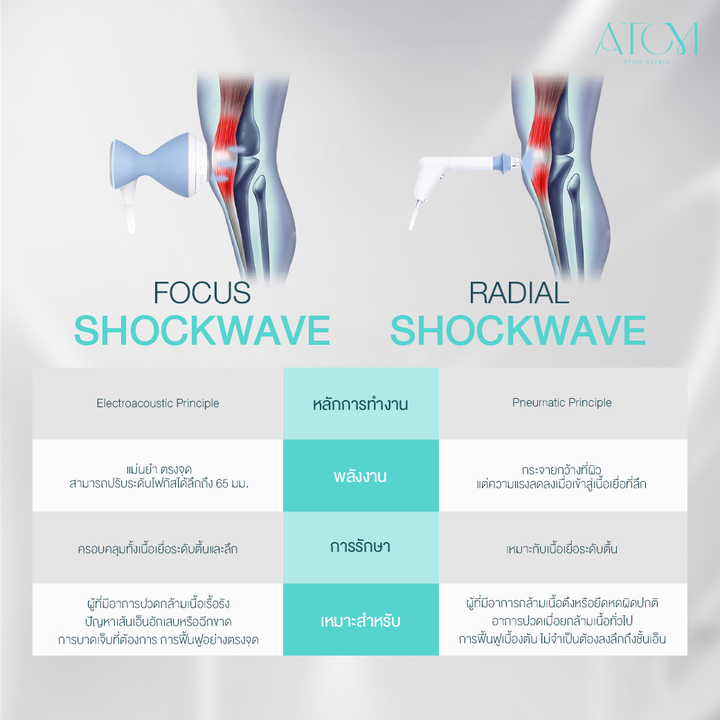 Radial Shockwave – พลังงานต่ำ กระจายกว้าง เหมาะสำหรับอาการทั่วไป เช่น ปวดกล้ามเนื้อหรือเอ็นตึง