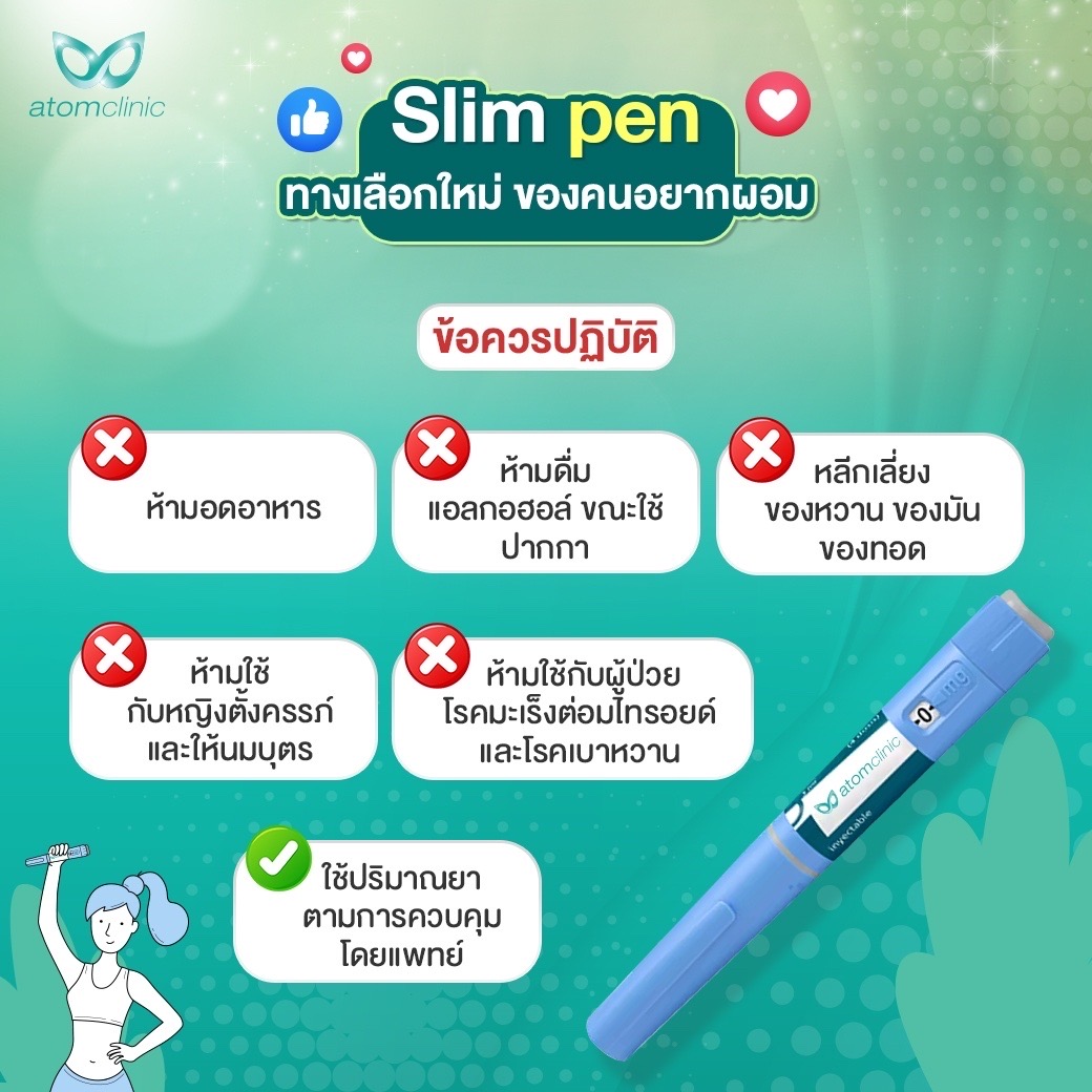 A: สำหรับการลดน้ำหนักได้มากหรือน้อยขึ้นอยู่กับแต่ละบุคคลว่ามีร่างกายตอบสนองมากน้อยแค่ไหน คนไข้ปฎิบัติตามแพทย์แนะนำอย่างเคร่งครัดหรือไม่ แต่โดยเฉลี่ยแล้ว ปากกา 1 ด้ามและยารับประทาน 1 เดือน สามารถลดได้ 4-5 กิโลกรัม โดยจะเห็นผลลัพธ์ตั้งแต่สัปดาห์แรก น้ำหนักจะลดลงประมาณ 0.5-3 กิโลกรัม ในปริมาณโดสตามแพทย์แนะนำ