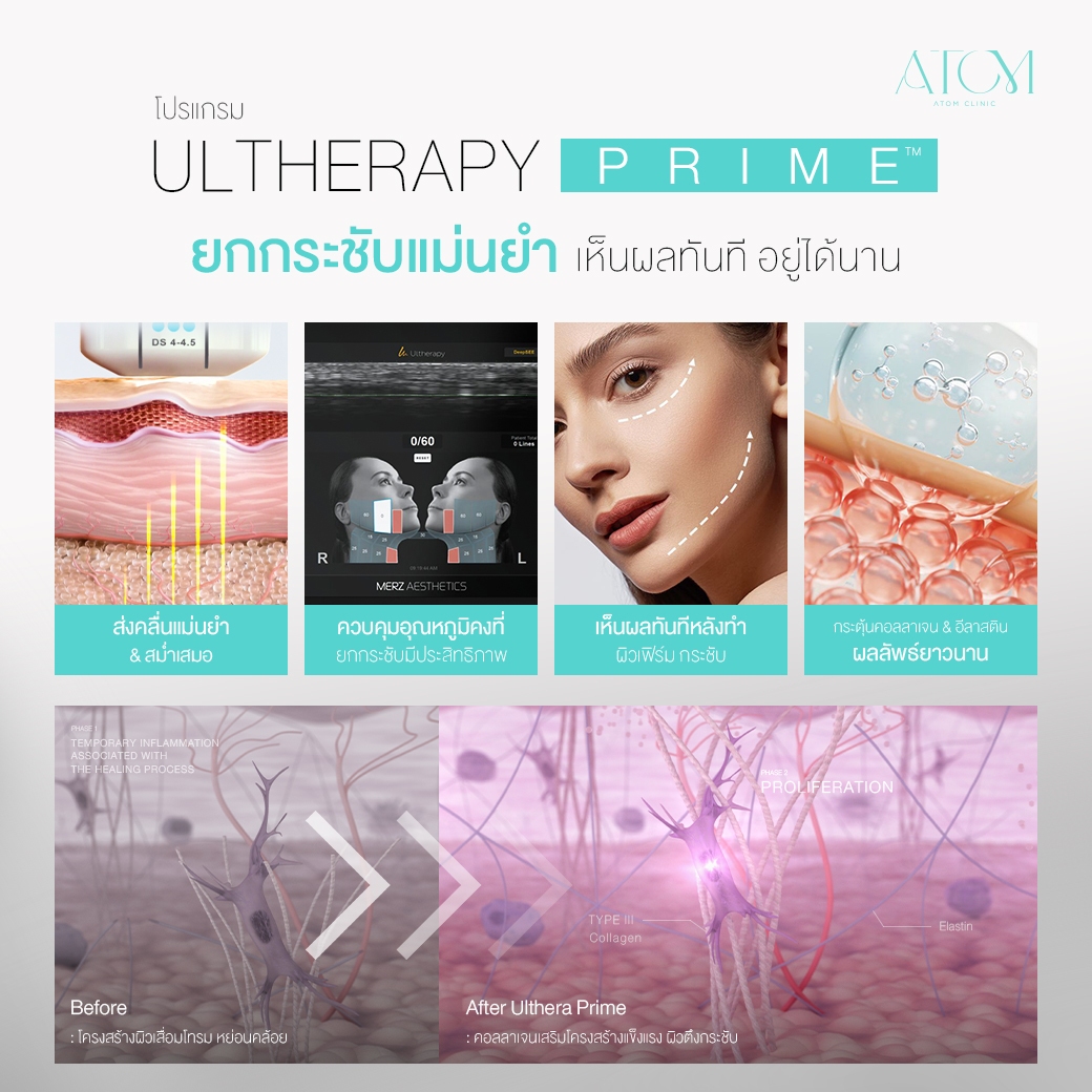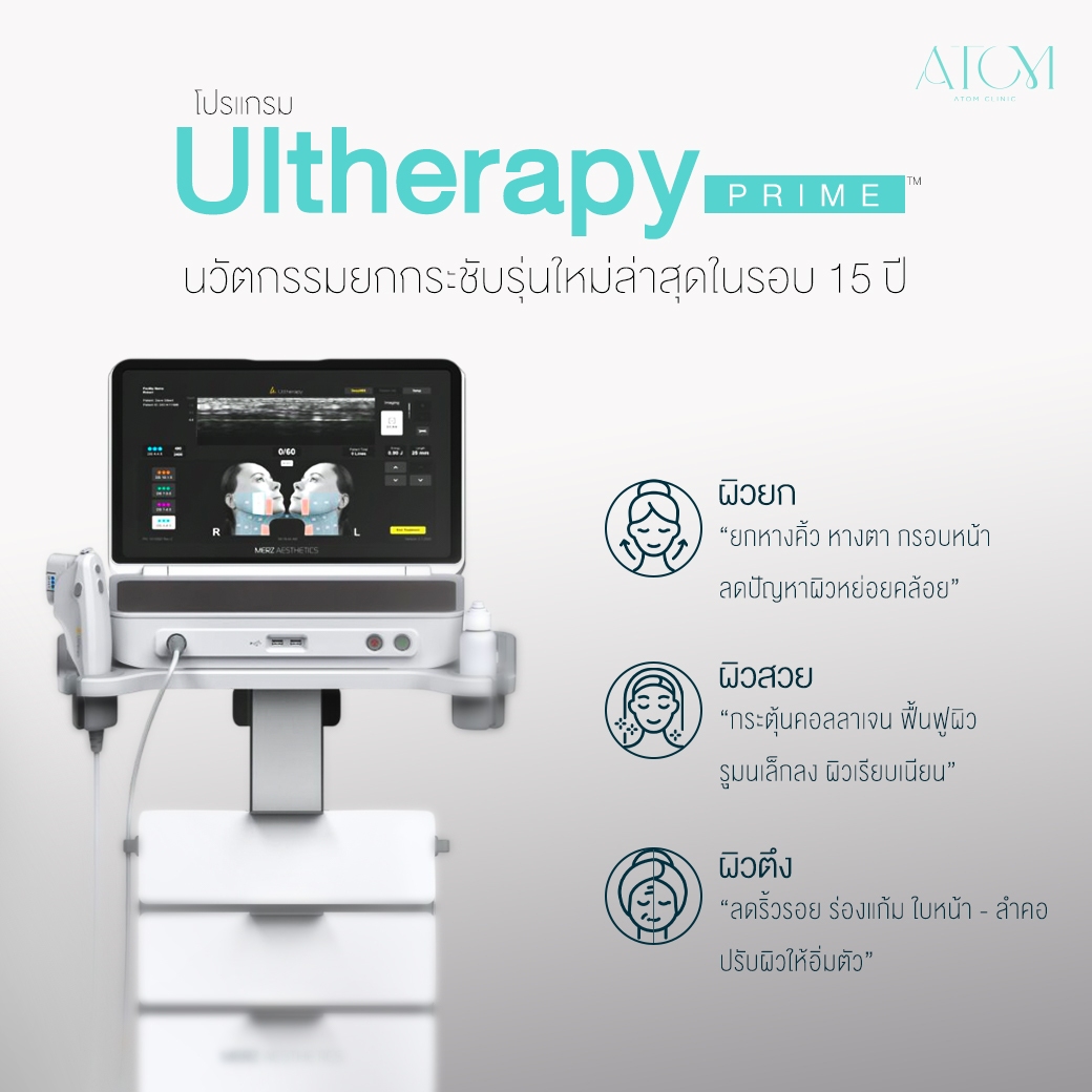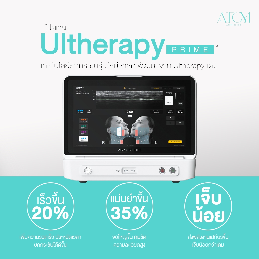 Ulthera Prime คือเครื่องยกกระชับผิวหน้ารุ่นใหม่ล่าสุด ที่ใช้คลื่นอัลตราซาวด์ยิงลงไปลึกถึงชั้นคอลลาเจนใต้ผิว ช่วยให้ผิว ยก กระชับ หน้าเรียว ดูอ่อนเยาว์ โดยไม่ต้องผ่าตัด ไม่ต้องพักฟื้น