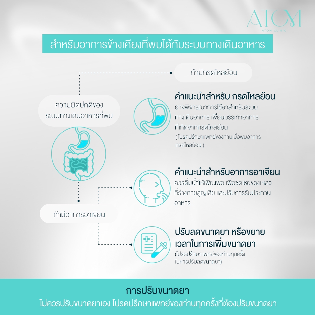 A : หากหยุดโดยไม่ควบคุมอาหารและการออกกำลังกาย น้ำหนักมีโอกาสกลับมา จึงควรดูแลสุขภาพควบคู่ไปด้วย